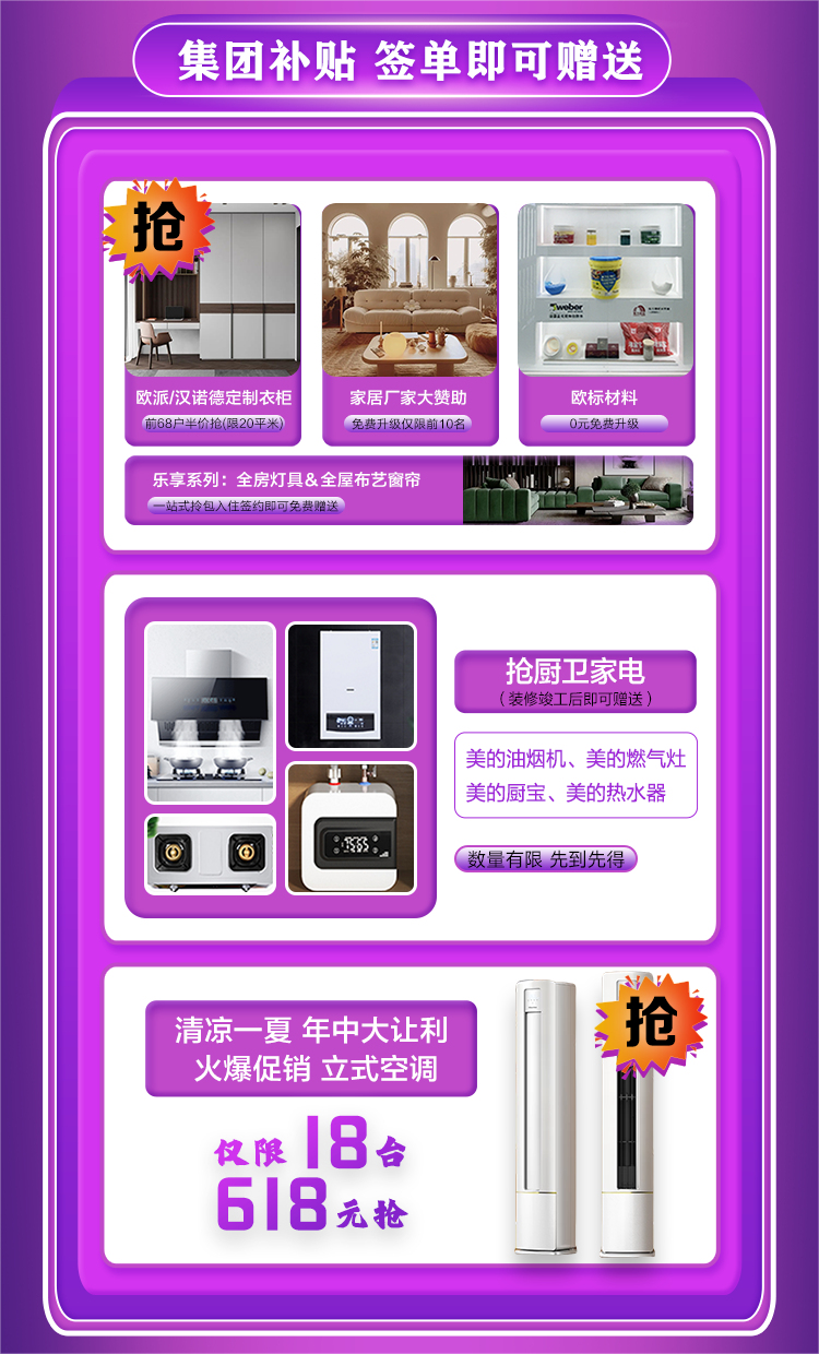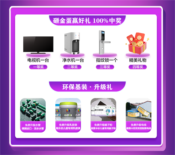 限時(shí)搶購:活動(dòng)期間,每天還將推出一定數(shù)量的廚衛(wèi)家電定裝修搶家電,數(shù)量有限先到先得。互動(dòng)抽獎(jiǎng):為了讓您更加深入地參與到我們的活動(dòng)中來,我們還特別設(shè)置了砸金蛋環(huán)節(jié)。100%中獎(jiǎng)。